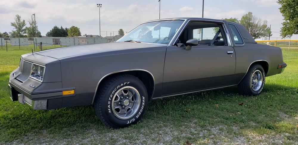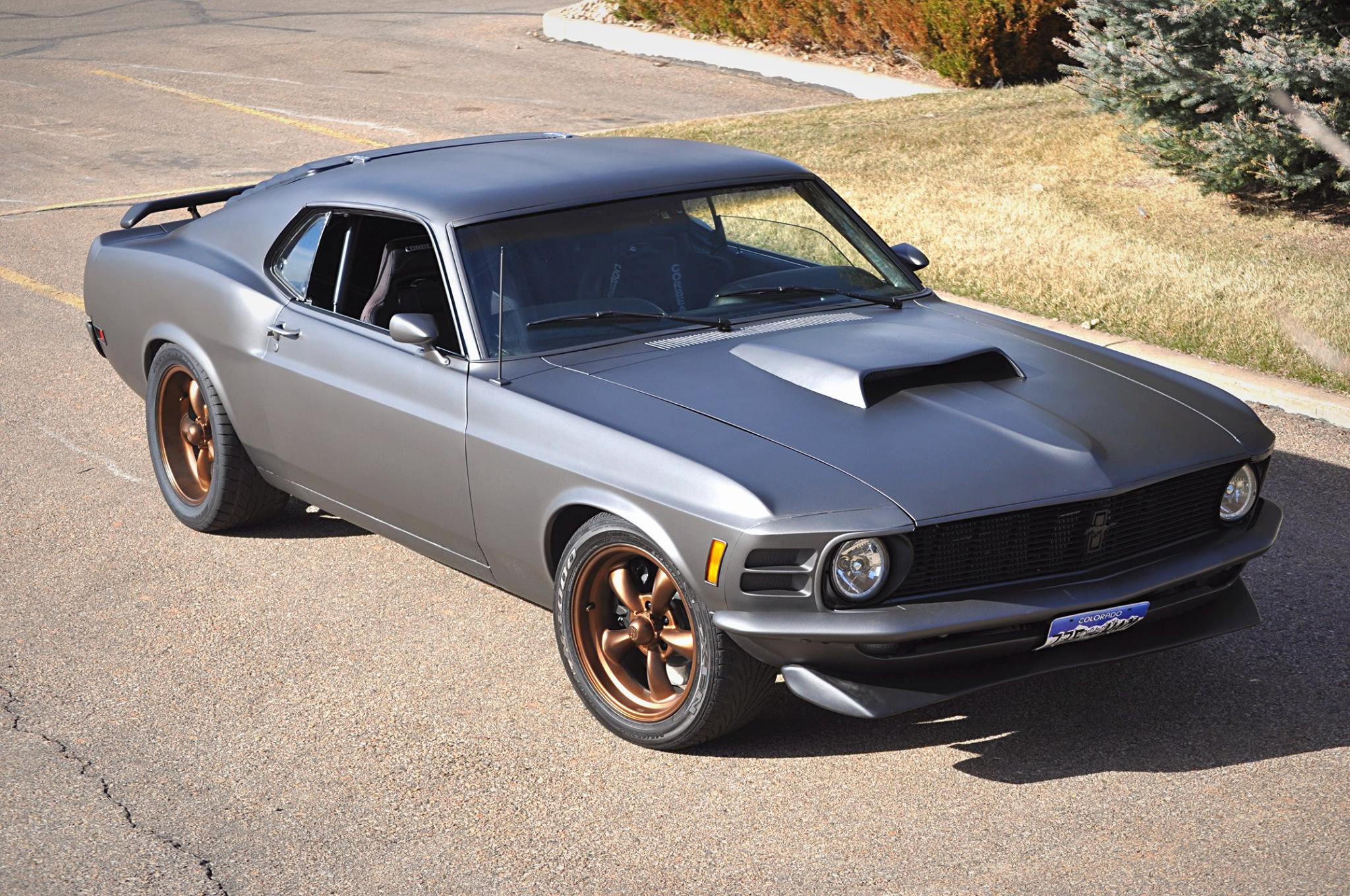An aggressive and dark grey metallic finish.