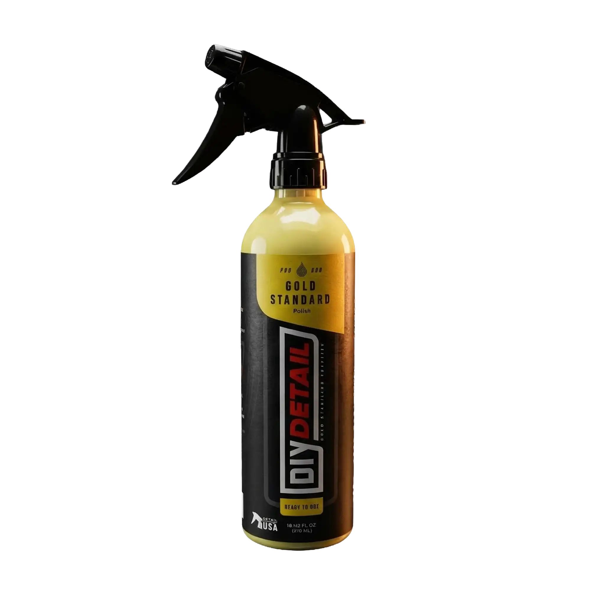 The DIY Detail Gold Standard Polish spray application is designed to provide proper dosing and polish distribution on the polishing pad. Spraying on the pad also reduces excessive product use. The Gold Standard Car Polish quickly and gently removes fine swirls and towel marks to create a mirror-like reflection on your car's exterior. This product is safe on all glossy paints including clear coats.
